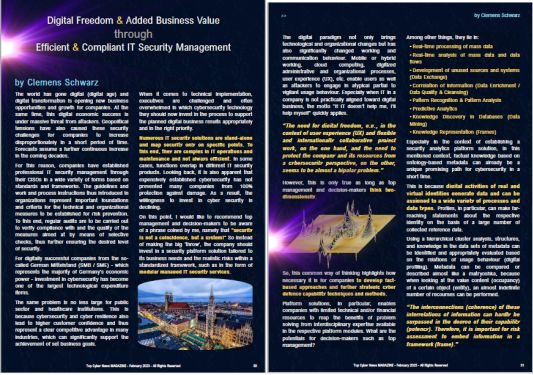 Technischer Fachbeitrag / Technical contribution IT Security Management – Clemens Schwarz: „Digitale Freiheit und geschäftlicher Mehrwert durch effizientes und konformes IT-Sicherheitsmanagement! / Digital freedom & added business value through efficient & compliant IT Security Management!“.